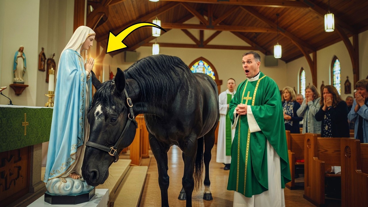 An untamed horse entered a church… stopped in front of the Virgin Mary, and no one can explain it
